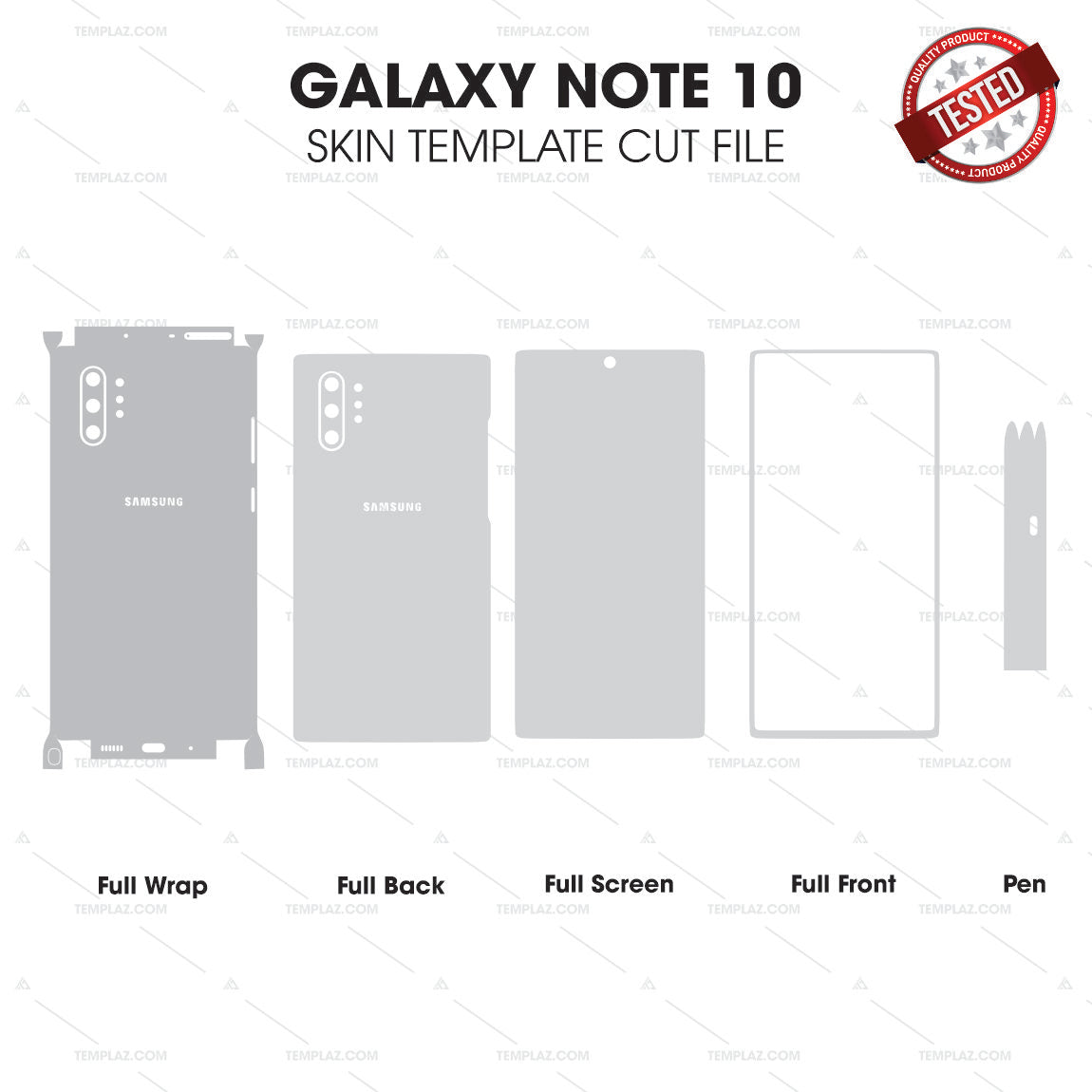 Downloadable Samsung Galaxy Note 10 skin templates for cutting on multiple vinyl cutters. Easy to apply with maximum coverage.